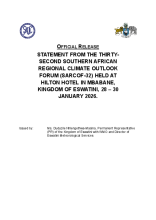 On behalf of all Permanent Representatives of the Southern African Development Community (SADC) National Meteorological and Hydrological Services (NMHSs) with the World Meteorological Organisation (WMO) present here and through their representatives, I am pleased to officially release the Thirty-Second Southern African Regional Climate Outlook (SARCOF-32) Statement for the February to June 2026 rainfall season. This outlook was developed by Climate Experts from the National Meteorological and Hydrological Services who participated in the Pre-COF session, conducted virtually last week and in person this week, graciously hosted by the Eswatini Meteorological Services and coordinated by the SADC Secretariat through the Climate Services Centre.