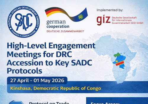 Le 21 avril 2026, Gaborone, Botswana : Le Secrétariat de la Communauté de développement de l’Afrique australe (SADC) tiendra des réunions de consultation de haut niveau à Kinshasa (République Démocratique du Congo), du 27 avril au 1er mai 2026. Organisée conjointement avec le gouvernement allemand au titre du programme de la Deutsche Gesellschaft für Internationale Zusammenarbeit (GIZ-CESARE), cette initiative vise à favoriser l’intégration économique régionale de la SADC.