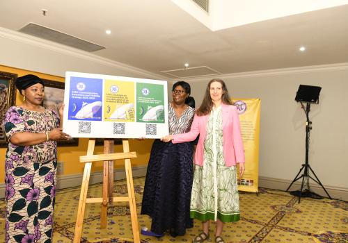 Madame Angèle Makombo N’tumba, Secrétaire exécutive adjointe de la SADC chargée de l’intégration régionale, a présidé la cérémonie de lancement aux côtés de Madame Simone Goertz, responsable de la coopération économique et du développement auprès de l’Ambassade de la République fédérale d’Allemagne au Botswana. Elles étaient entourées de Madame Barbara Lopi, responsable de l’Unité communication et relations publiques du Secrétariat, de représentants des États membres, des Points de contact nationaux, des coordonnateurs nationaux des médias, de l’Association des diffuseurs d’Afrique australe, du Forum des rédacteurs d’Afrique australe, du Centre de recherche et de documentation d’Afrique australe, de l’institut des médias de l’Afrique australe – Chapitre Botswana, et de membres de la presse.