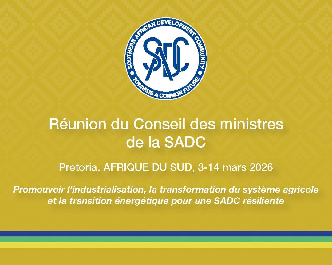 La réunion du Conseil des ministres de la Communauté de développement de l’Afrique australe (SADC) se tiendra les 12 et 13 mars 2026 à Pretoria en République d’Afrique du Sud, au cours de laquelle les ministres évalueront les progrès réalisés dans la mise en œuvre des programmes d’intégration régionale.